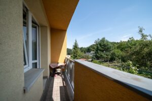 Pro první seznámení s domem vás zvu na 3D prohlídku, která je součástí inzerátu (klik na šipku/tlačítko play). V přízemí domu jsou technické místnosti, garáž a plynový kotel, který zajišťuje ohřev vody i ústřední vytápění jednotlivých místností. V prvním patře je situován obývací pokoj s funkčním krbem, ze kterého je přístup na balkón orientovaný na zahradu. Samostatný vchod zde má jídelna s kuchyní, z jídelny vstoupíte na další balkón, směrem na ulici. Ve druhém patře jsou vám k dispozici čtyři pokoje, z ložnice je vstup na poslední balkón orientovaný do zahrady.